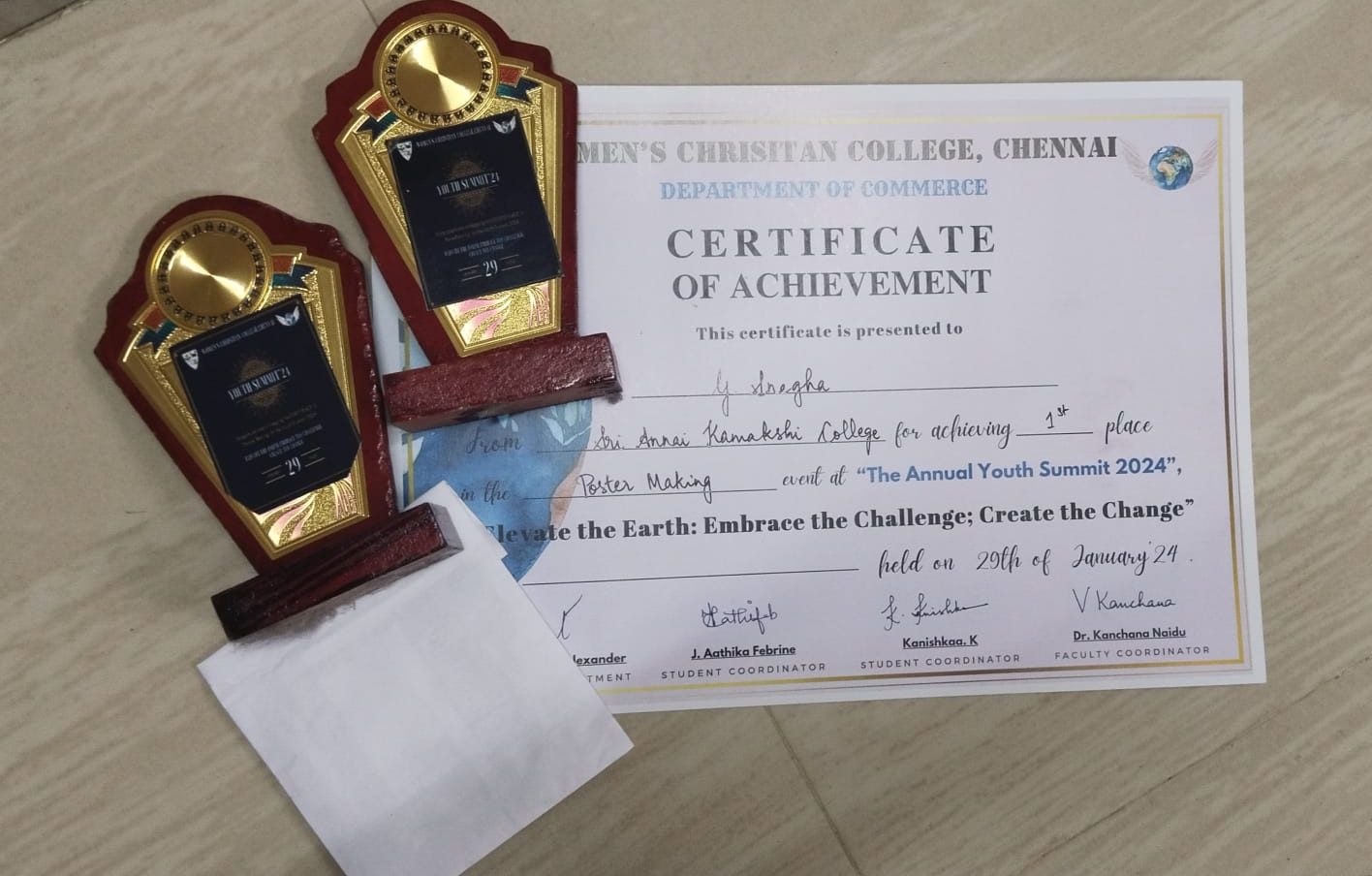 Snegha G got First Prize in Painting Competition and Jeyameena M got Second Prize in Painting Competition.